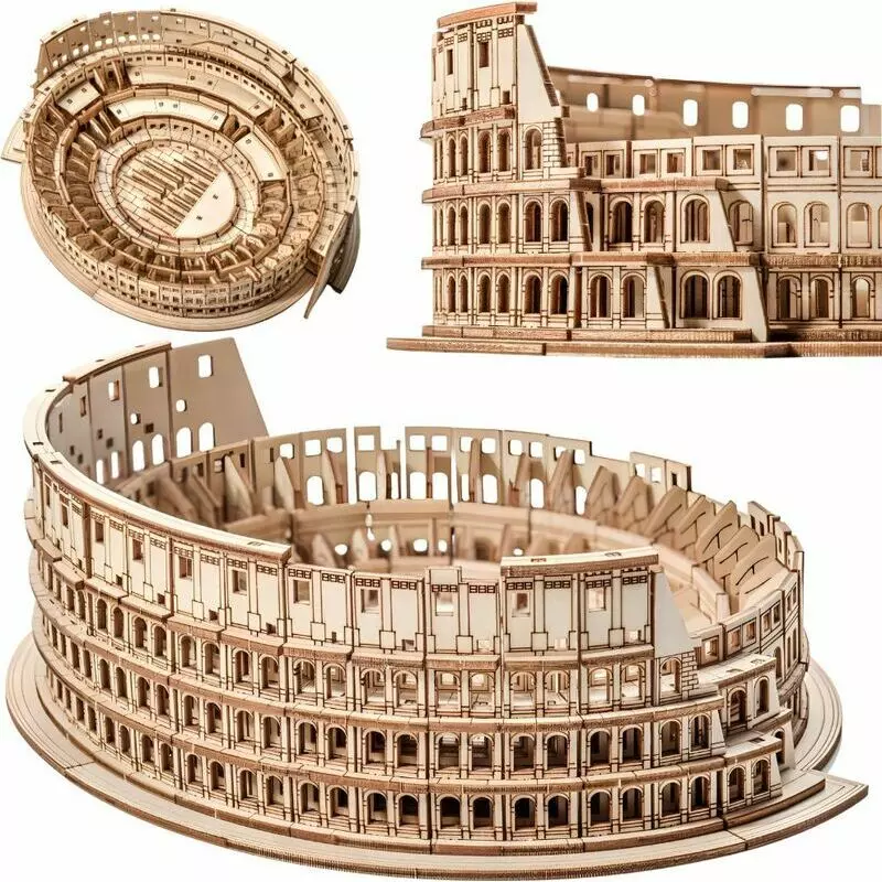 Piękny, trójwymiarowy model słynnego Rzymskiego Koloseum, wykonany z wysokiej jakości sklejki. 430 precyzyjnie wyciętych elementów, bez potrzeby użycia kleju — idealna dekoracja i inteligentna zabawa w jednym.