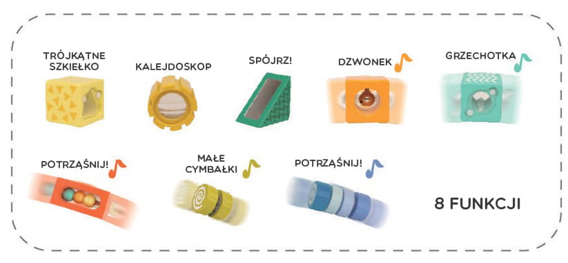 Zestaw Classic World Drewniane Klocki Sensoryczne 7 Funkcji Układanka Multifunkcyjna Kształty Dźwięk MONTESSORI 14 el. to doskonała zabawka edukacyjna dla najmłodszych. Zgodnie z filozofią Montessori, zabawka wspiera rozwój dziecka poprzez zabawę. Zawiera 14 elementów, w tym klocki z funkcjami takimi jak grzechotki, lusterka czy elementy do przesuwania. Dzięki różnorodnym funkcjom, dziecko rozwija zdolności manualne, poznawcze oraz zmysły. Wykonane z naturalnego drewna, malowane nietoksycznymi farbami, zapewniają bezpieczeństwo podczas zabawy. Idealne dla dzieci od 18. miesiąca życia.