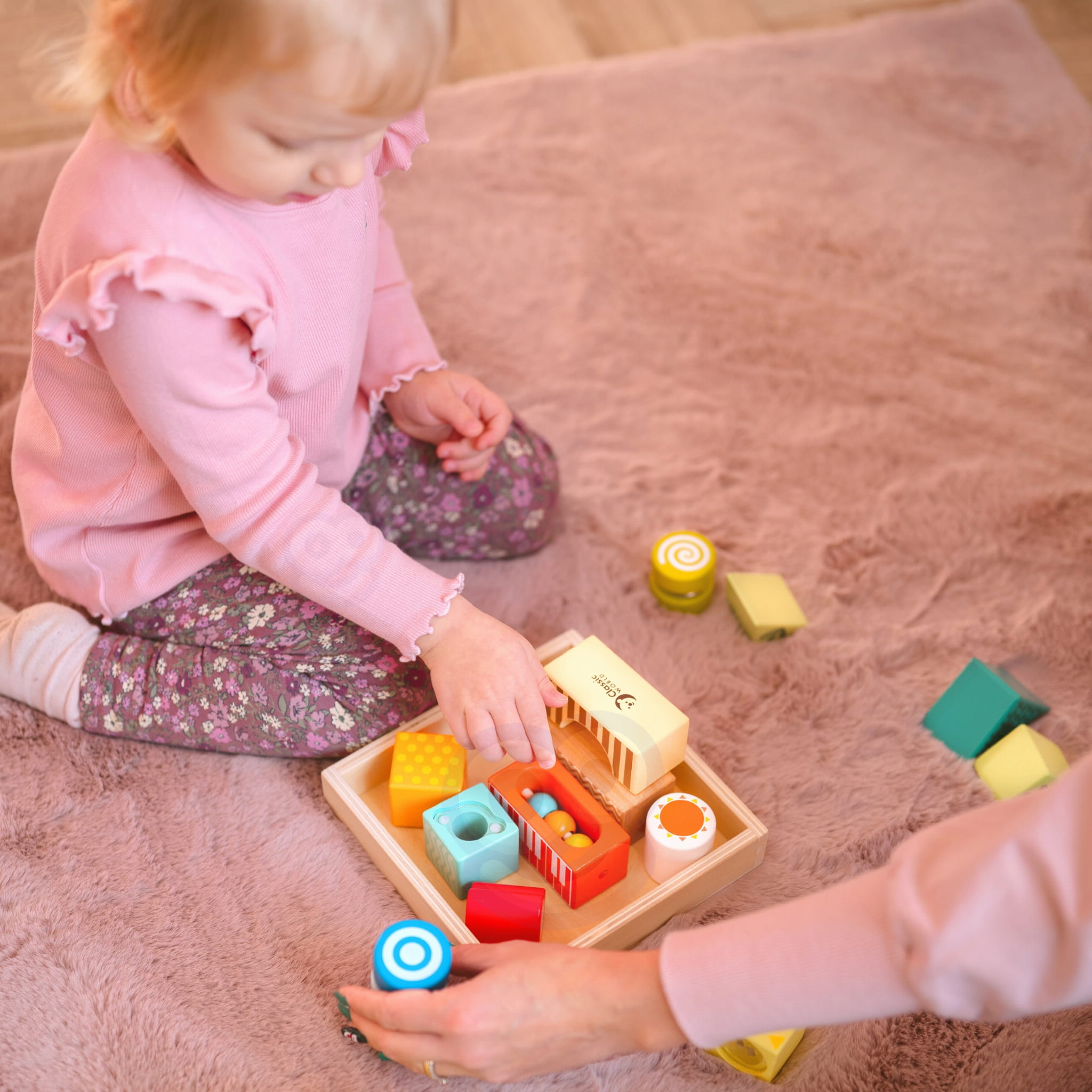 Drewniane Klocki Sensoryczne 7 Funkcji Układanka Multifunkcyjna Kształty Dźwięk MONTESSORI 14 el.