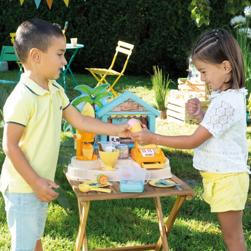 SMOBY Beach Bar to plażowy zestaw zabawy idealny na lato! Uroczy barek z akcesoriami i eleganckimi detalami przeniesie dziecko w świat tropikalnej przygody, zachęcając do kreatywnej zabawy i wspólnych palmowych klimatycznych chwil.