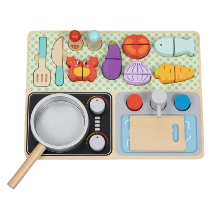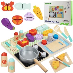 TOOKY TOY Drewniana Kuchnia z Akcesoriami - Zestaw Małego Kucharza