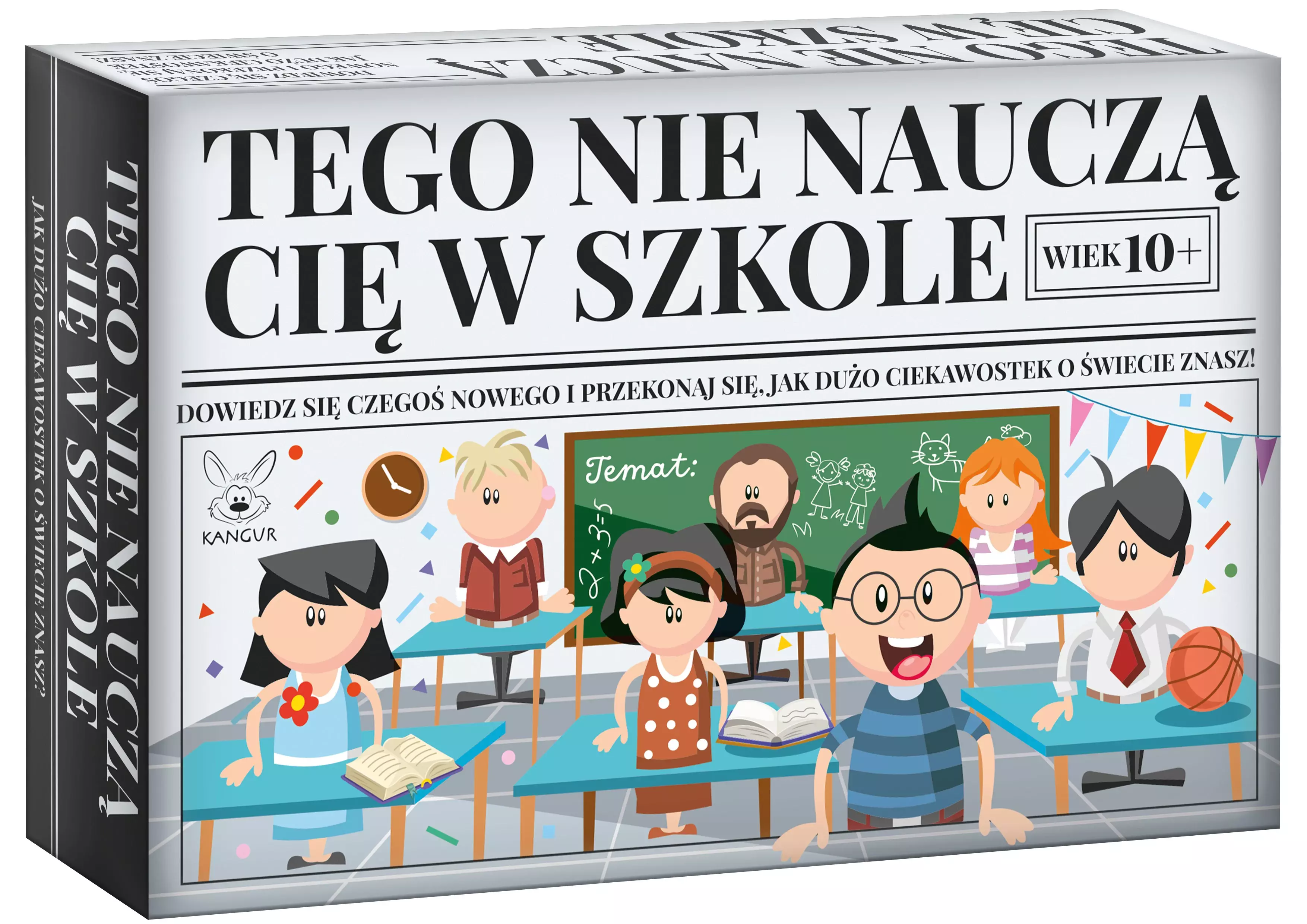„Tego nie nauczą Cię w szkole!” to kultowa gra edukacyjna pełna ciekawostek i niespodzianek! W pudełku znajdziesz 54 karty z 216 pytaniami o świecie, niezwykłych faktach i tajemnicach, które wykraczają poza szkolne podręczniki. Idealna propozycja dla rodzin i znajomych w wieku od około 10 lat – zabawna, angażująca i po prostu wciągająca!