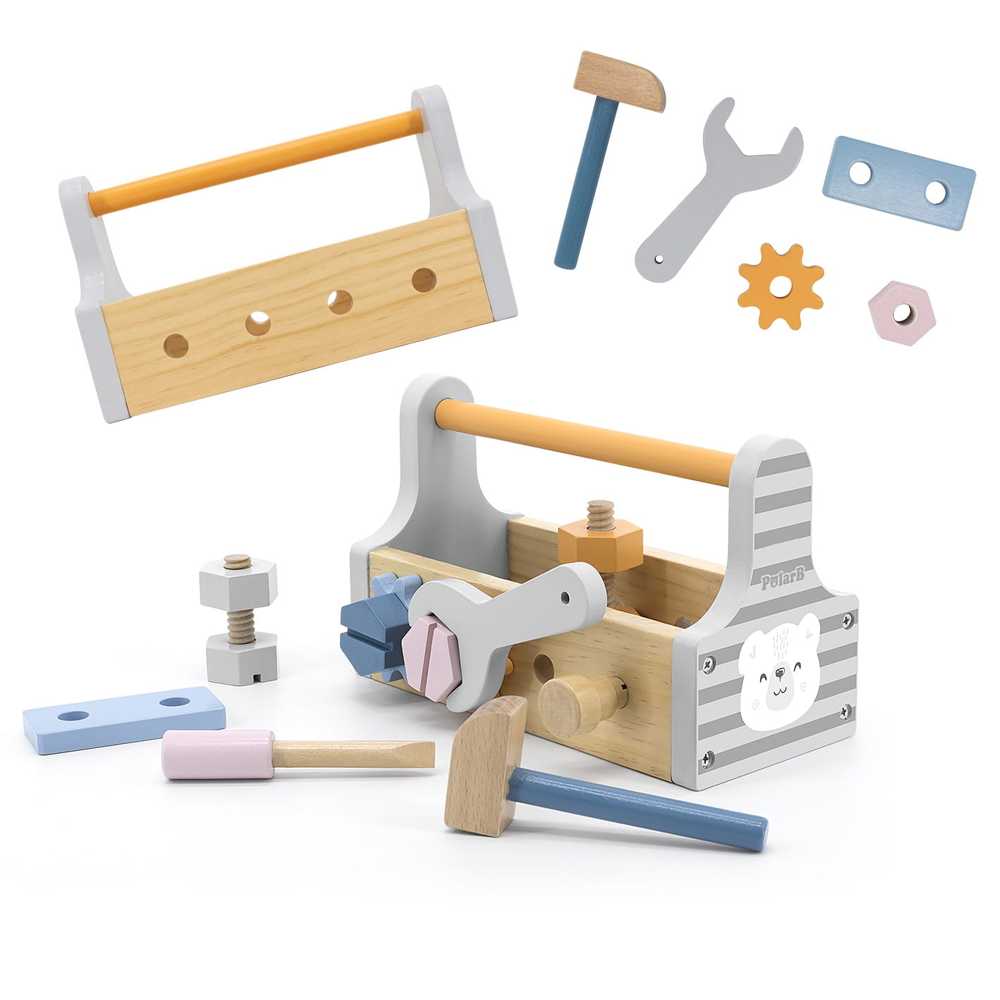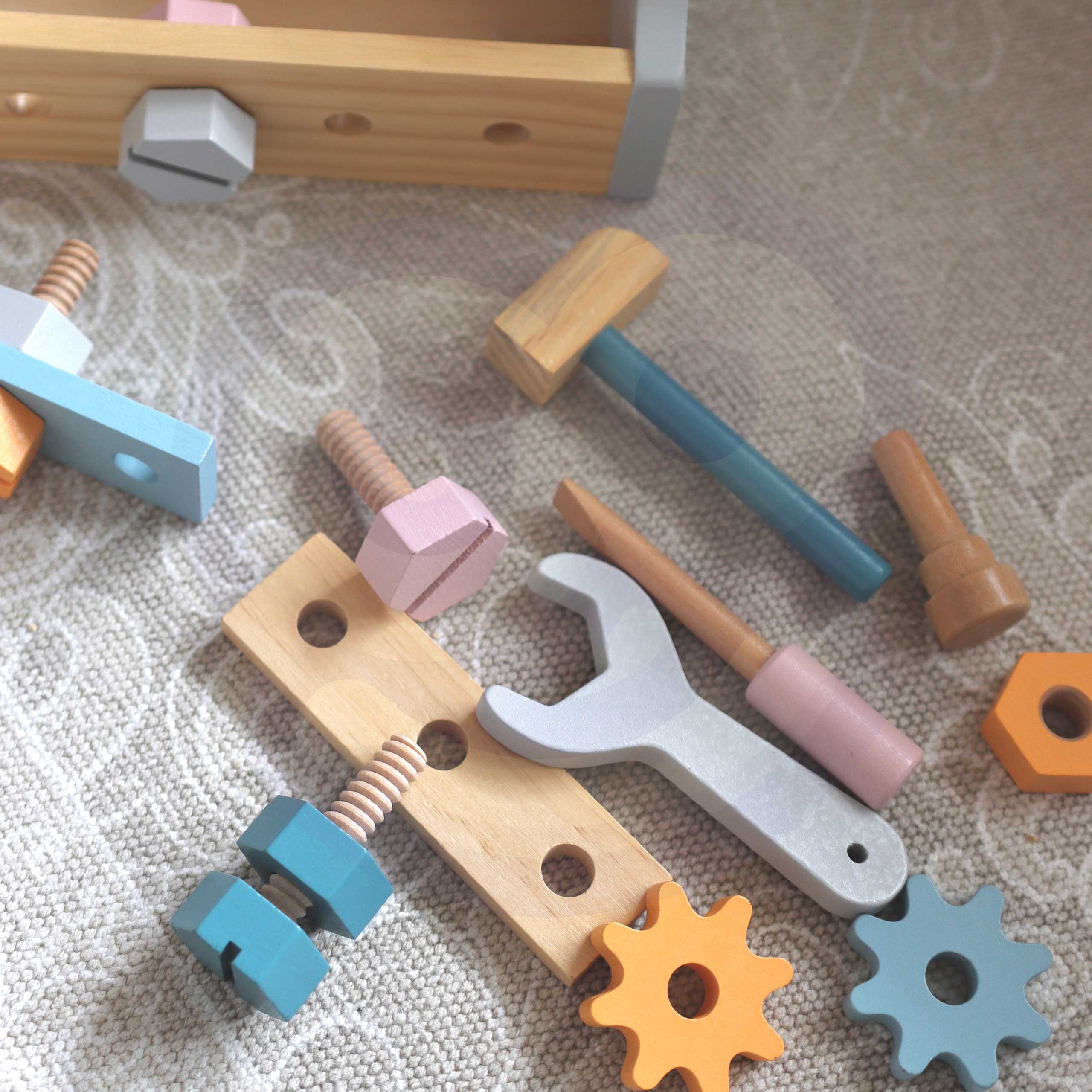 VIGA PolarB Drewniana Skrzynka z Narzędziami to idealny zestaw dla małych majsterkowiczów! Drewniane, bezpieczne narzędzia w pastelowych kolorach rozwijają zdolności manualne i wyobraźnię malucha. Edukacja i zabawa w jednym — daj swojemu dziecku najlepszy start!