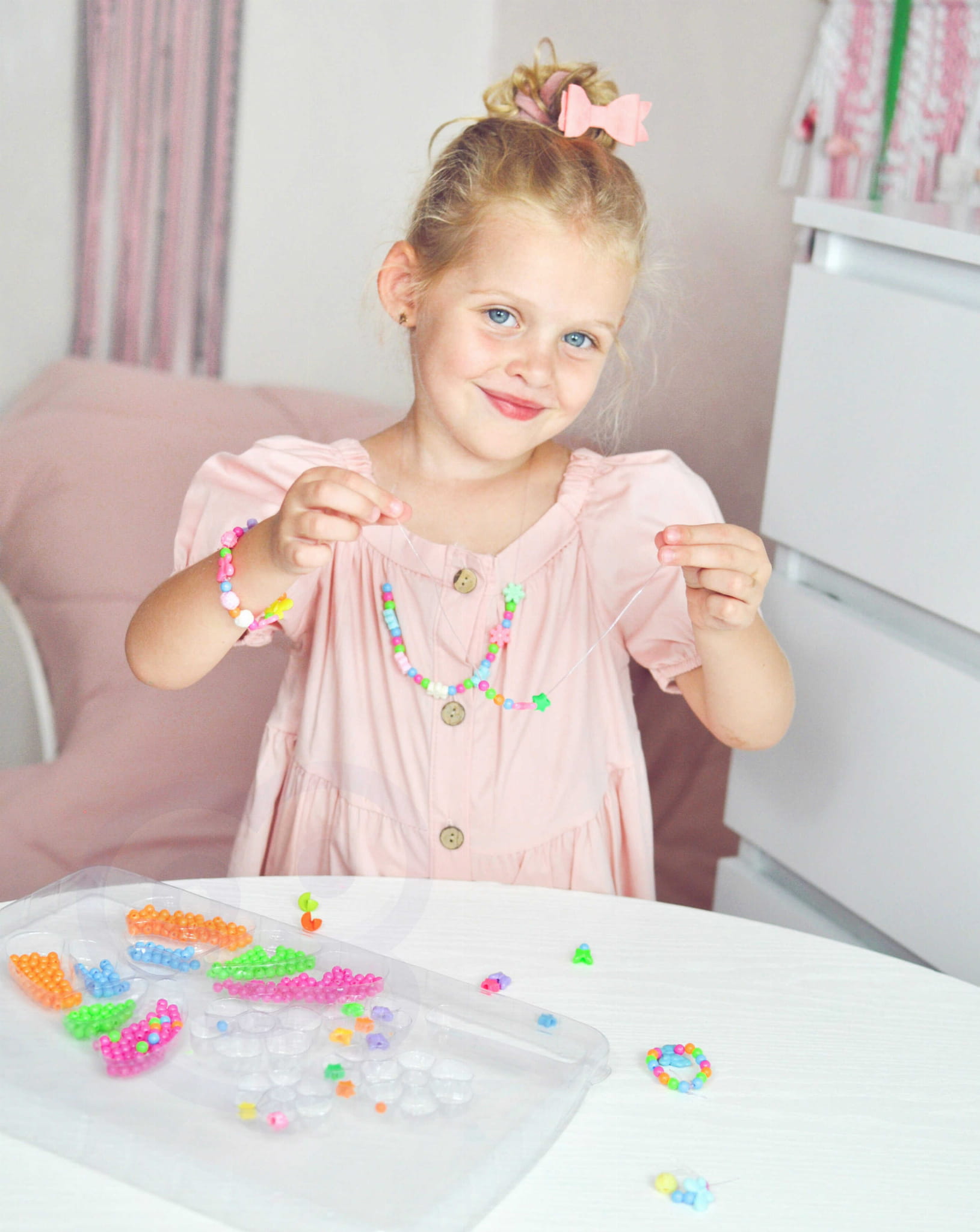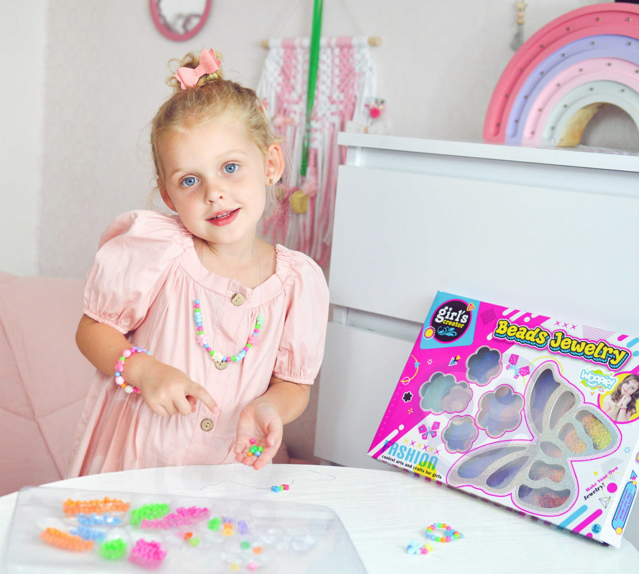 WOOPIE ART&FUN – Zestaw do Robienia Biżuterii z Motylkami to kreatywny komplet dla dzieci, które kochają tworzyć coś wyjątkowego. Dzięki bogatemu zestawowi kolorowych koralików, zawieszek i elementów z motywem motylków, każda mała artystka stworzy własną, unikalną biżuterię – od bransoletek i naszyjników po pierścionki i kolczyki!