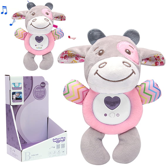 Wyposażony w melodyjne kołysanki i subtelne efekty świetlne, uspokaja i wprowadza malucha w sen. Mechanizm można łatwo wyjąć, co umożliwia pranie samego maskotka. Gryzak przy deku wspomaga komfort ząbkowania, a miękka struktura pluszaka pozwala na przytulanie i rozwój zmysłu dotyku.
