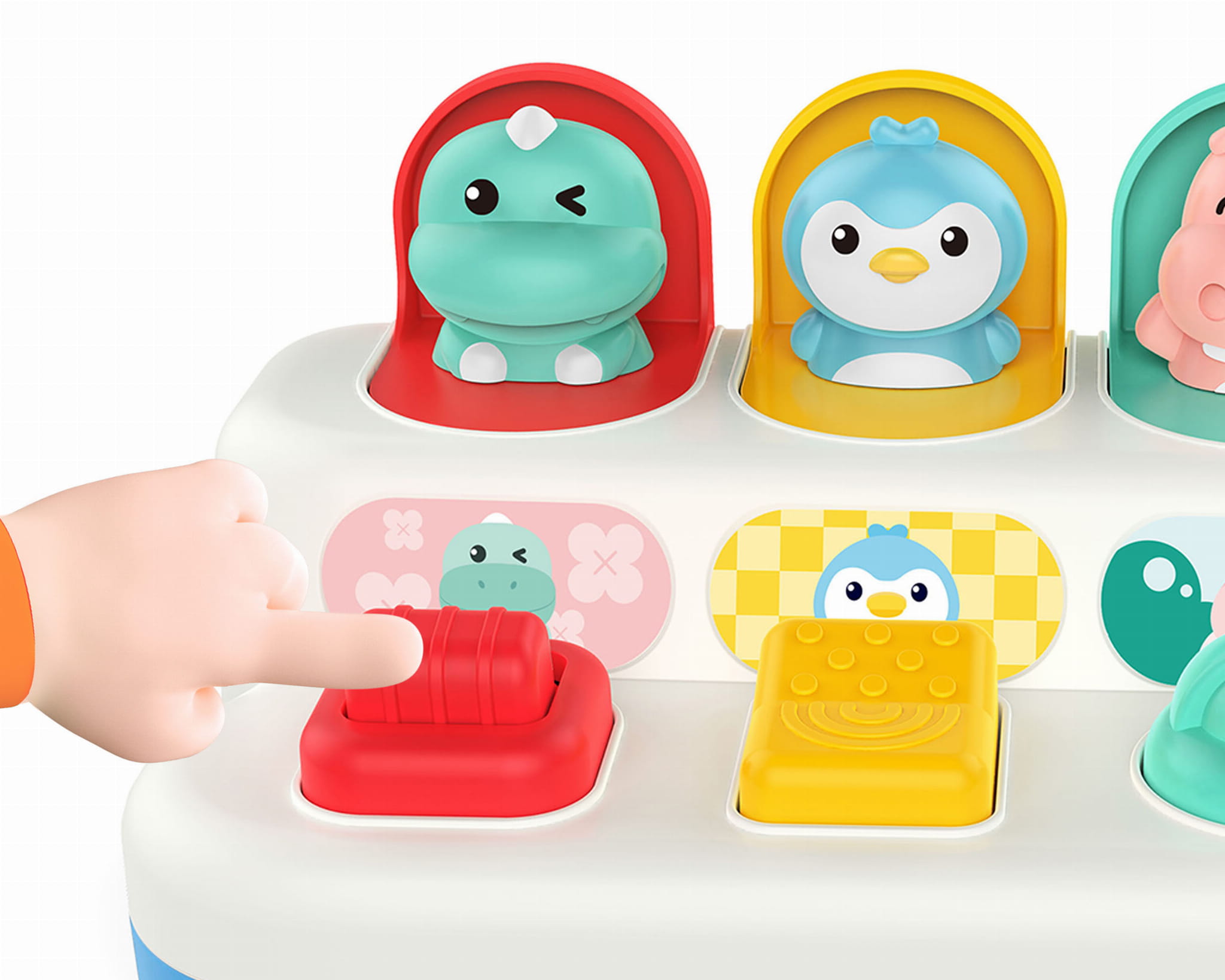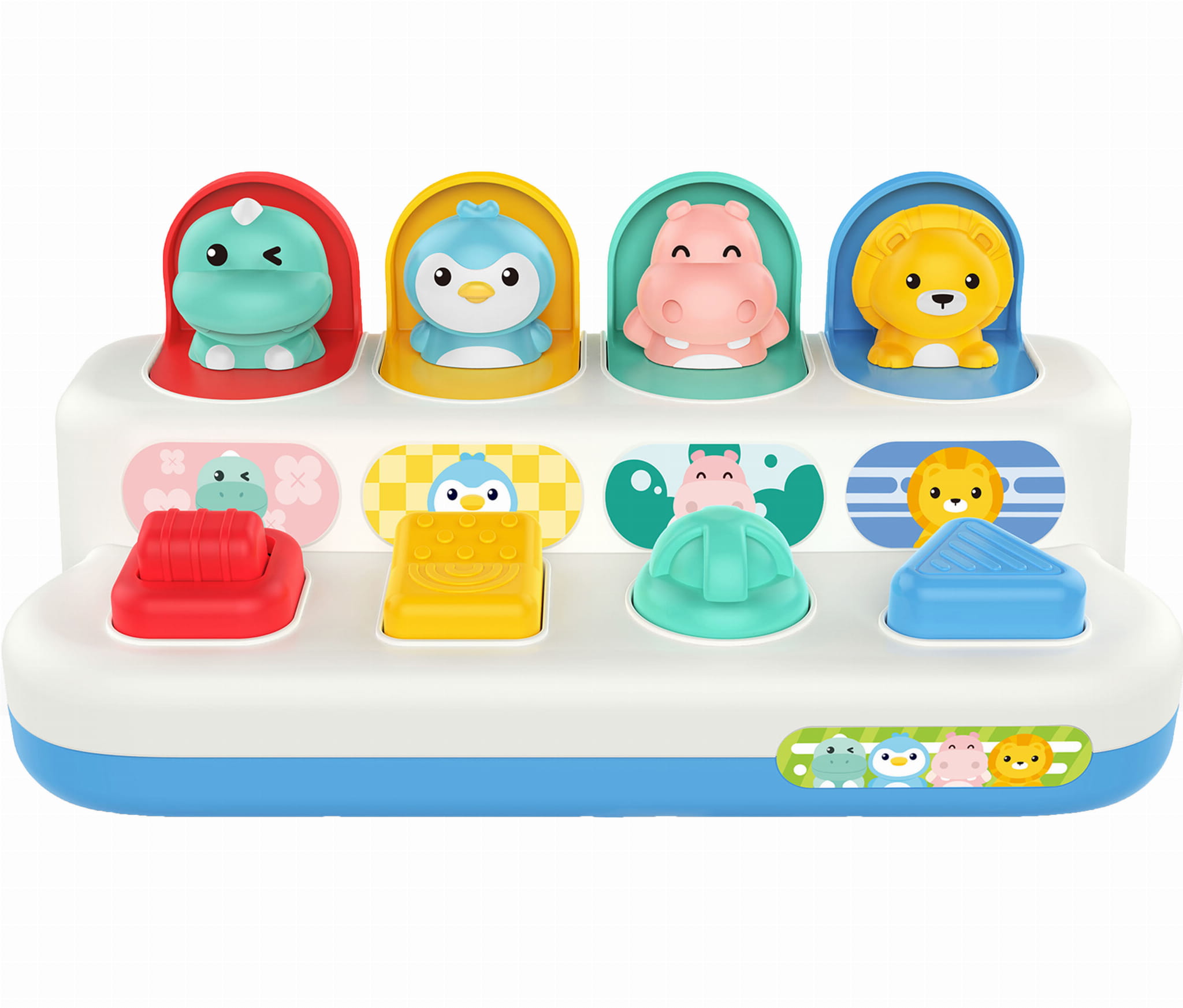 Kolorowa WOOPIE BABY Zabawka Edukacyjna Wyskakujące Zwierzątka POP-UP – interaktywna zabawa dla maluszków! 5 wyskakujących zwierzątek aktywowanych różnymi mechanizmami. Idealna dla dzieci od 18. miesiąca życia.