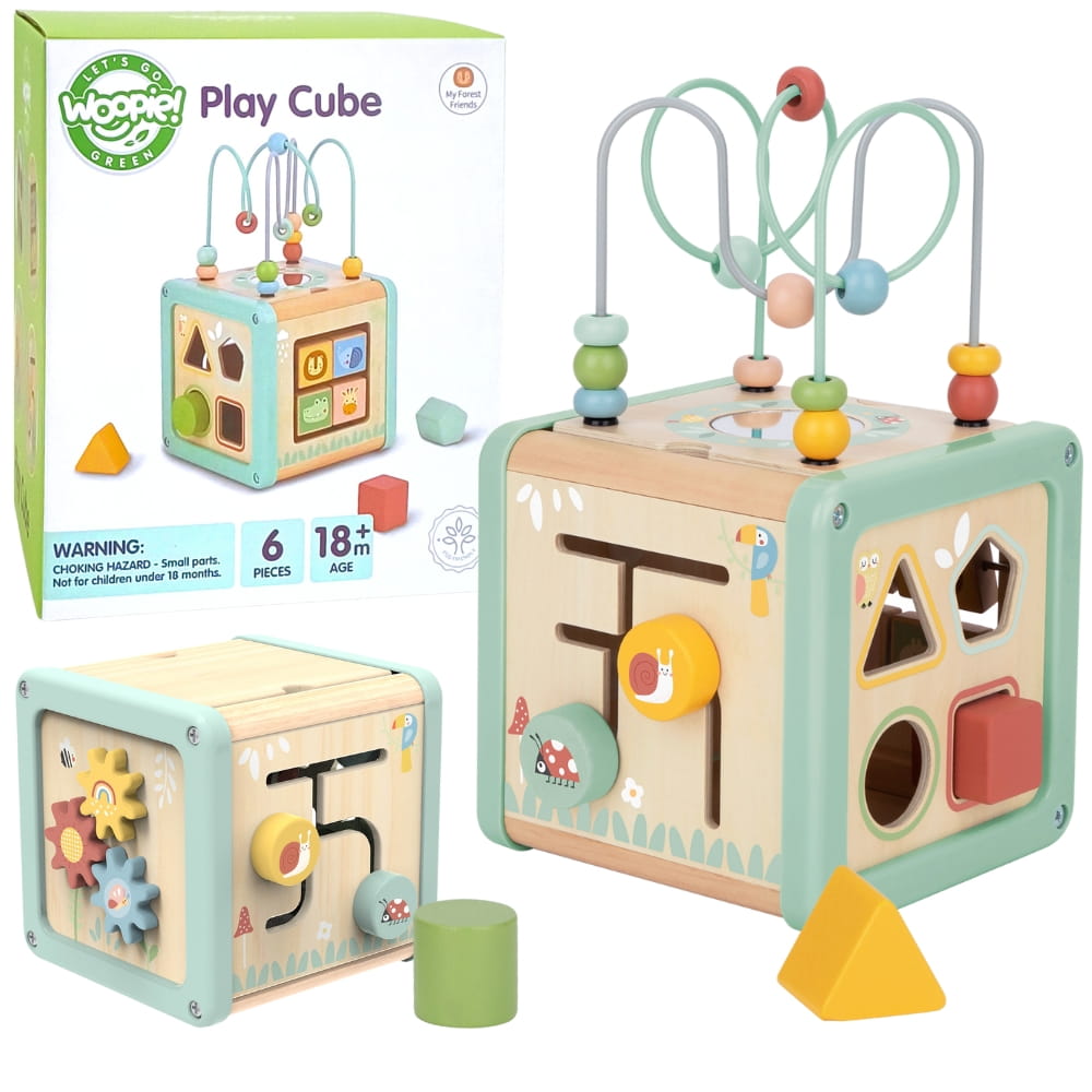 WOOPIE GREEN Drewniana Kostka Aktywności Multifunkcyjna Edukacyjna Sorter