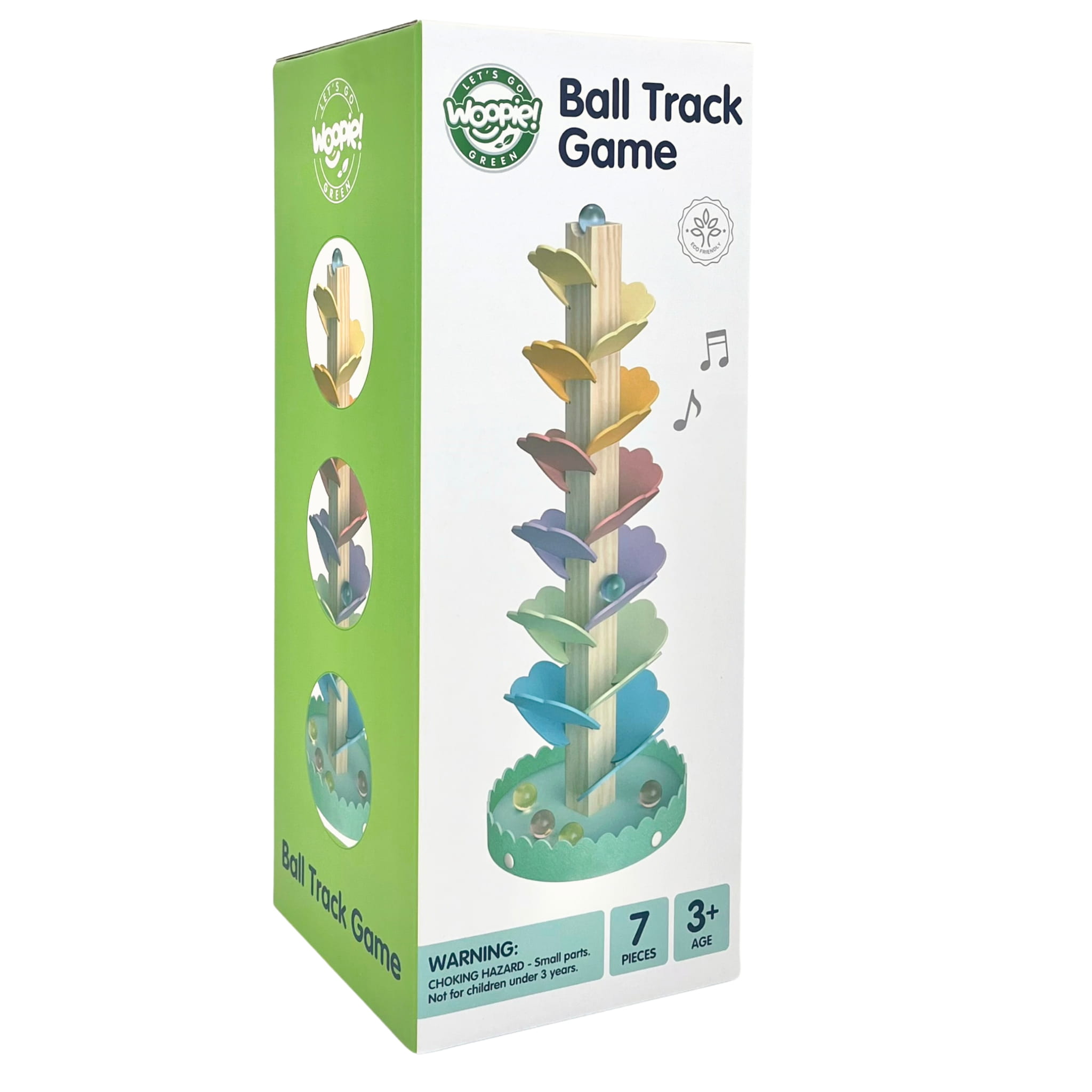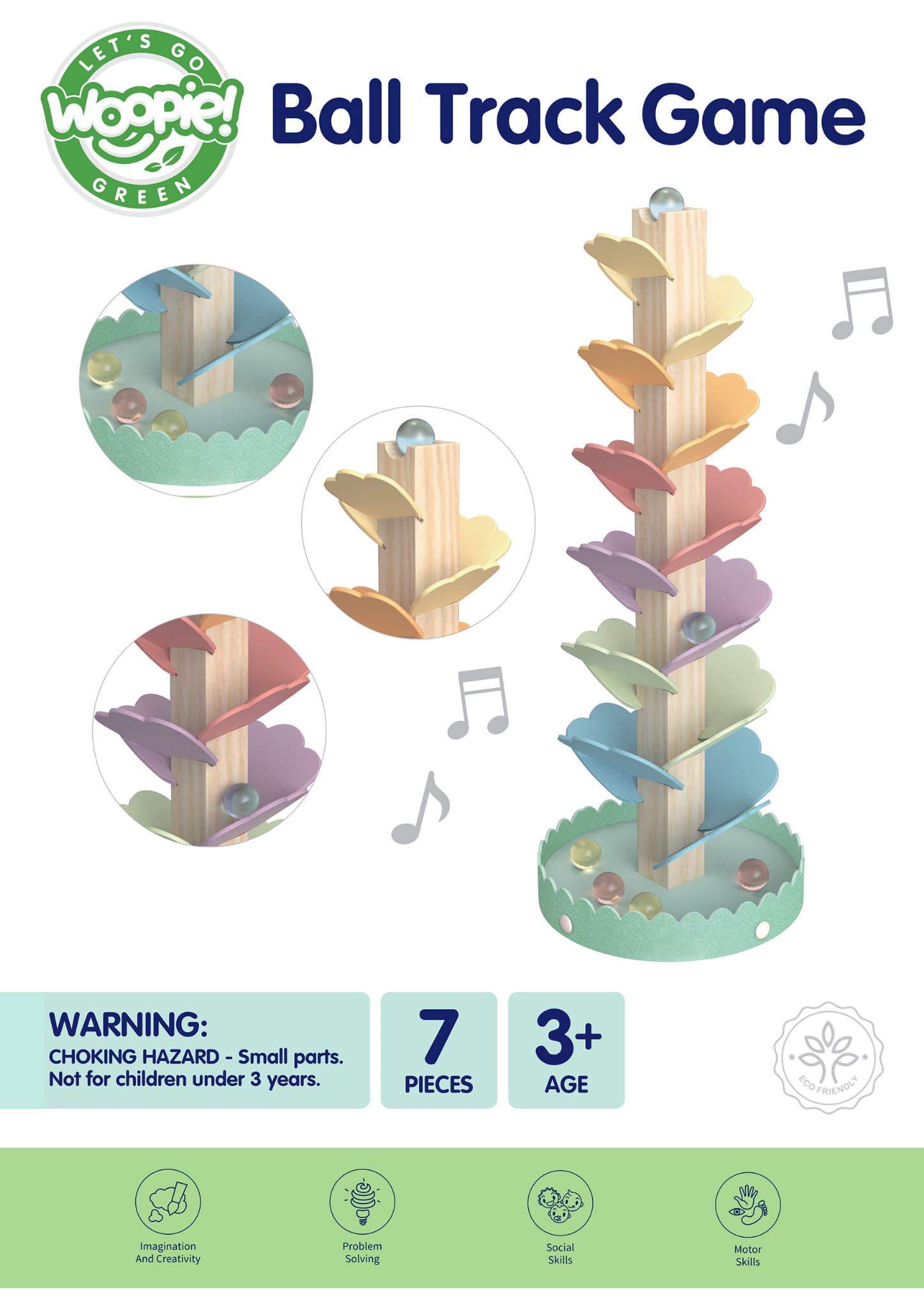 Poznaj WOOPIE GREEN Drewniany Kulodrom Muzyczne Drzewko – tęczową konstrukcję Montessori w ekologicznej wersji FSC, która zamienia każde puszczenie kulki w magiczne doświadczenie sensoryczne. Każda kula to nowa melodia – delikatne stukanie i melodyczny ton przypominają cichą grę na cymbałkach, wspierając rozwój zmysłu słuchu. Drewniany tor w pastelowych kolorach nie tylko zachwyca wzrok, ale również doskonale ćwiczy zdolności manualne, koordynację wzrokowo-ruchową i logiczne myślenie, gdy dziecko obserwuje tor ruchu kulki. Zabawka przeznaczona dla dzieci od około 3. roku życia, łatwa w montażu, wykonana z naturalnego drewna i nietoksycznych farb. Kompaktowe wymiary i lekka konstrukcja sprawiają, że kulodrom pasuje nawet do niewielkich przestrzeni, dając wiele godzin kreatywnej zabawy i pierwszych lekcji fizyki w domu.