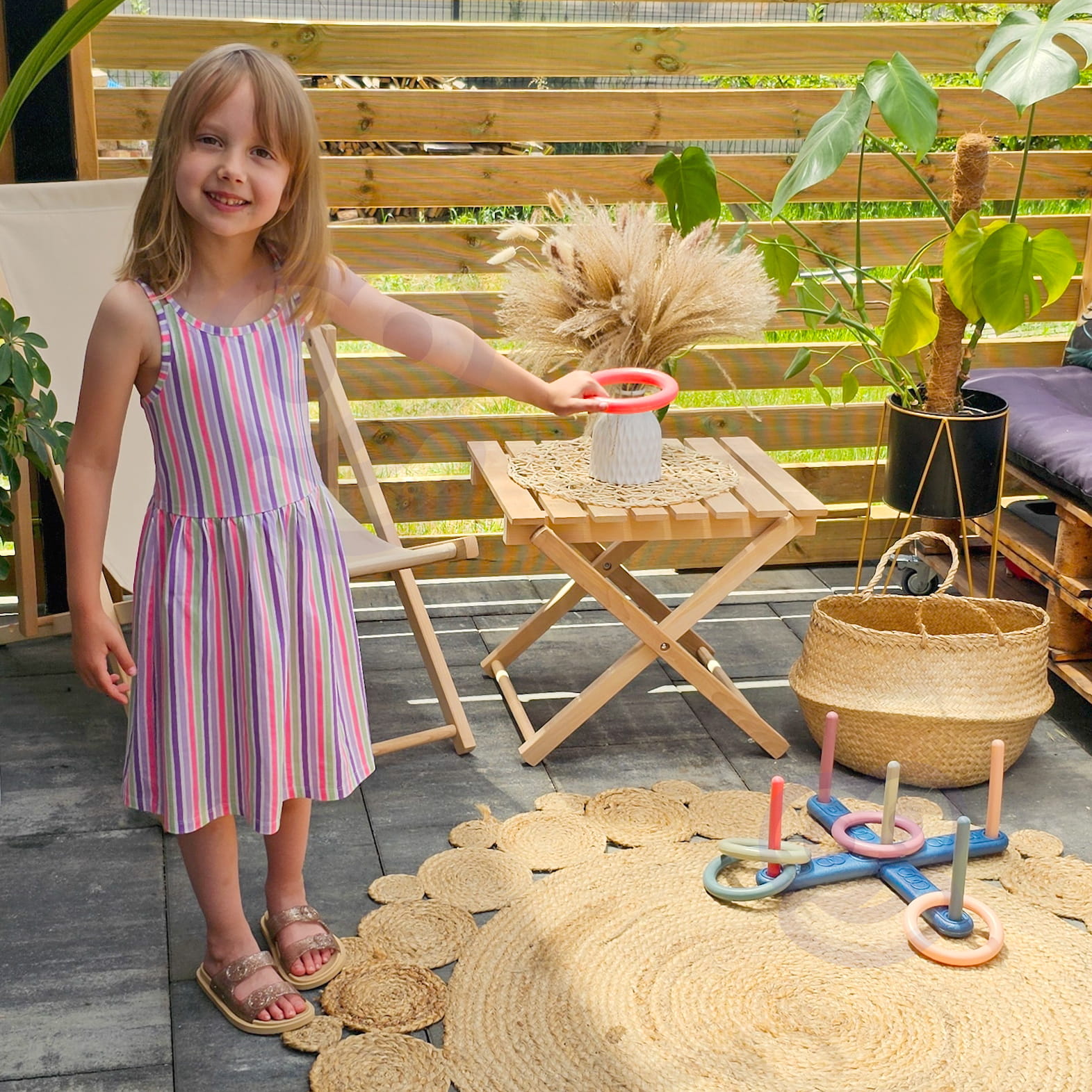 Zestaw WOOPIE Serso Fun Throwing Circle to wciągająca gra zręcznościowa z elementami zdrowej rywalizacji, składająca się z pięciu palików i pięciu równie kolorowych obręczy didactically, którą dzieci już od 3. roku życia mogą ustawiać i celować poprzez rzuty – łatwy montaż i demontaż pozwala zabrać ją wszędzie, a zabawa rozwija koordynację ruchową, refleks i koncentrację, sprzyjając wspólnemu spędzaniu czasu i nauce poprzez ruch i przyjemną aktywność fizyczną dla całej rodziny!