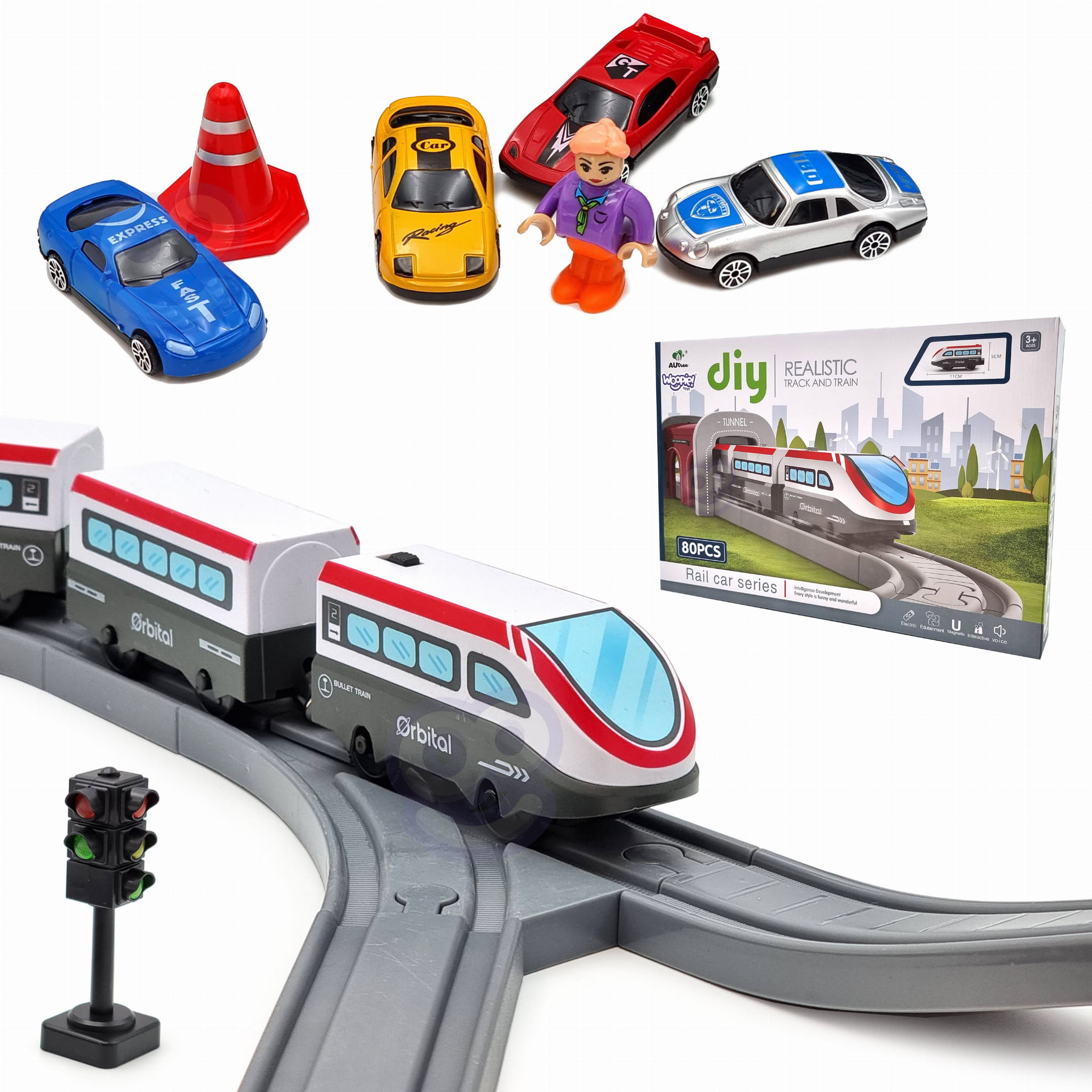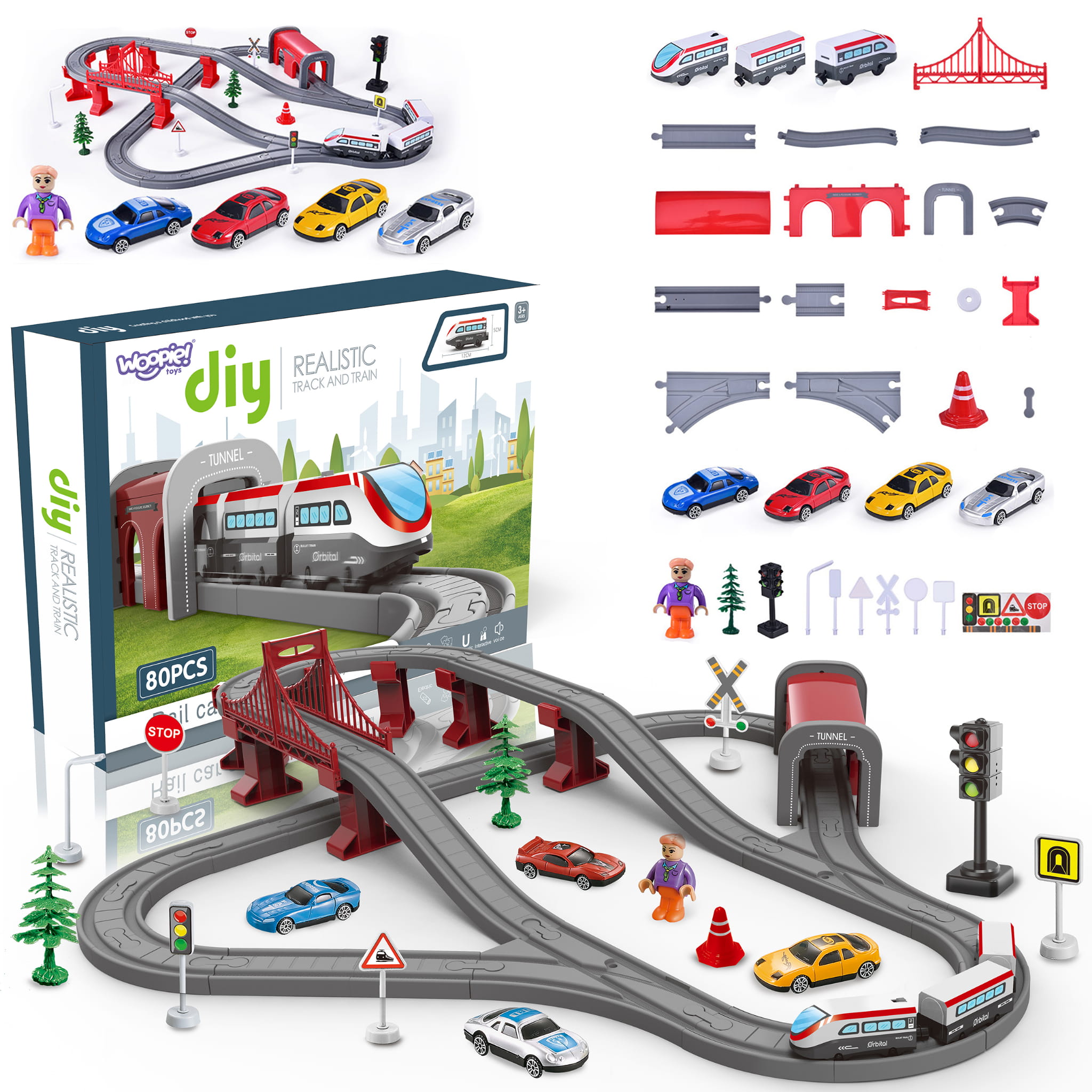 WOOPIE – Kolejka Elektryczna Tor + Most + Tunel – Zestaw 80 Elementów