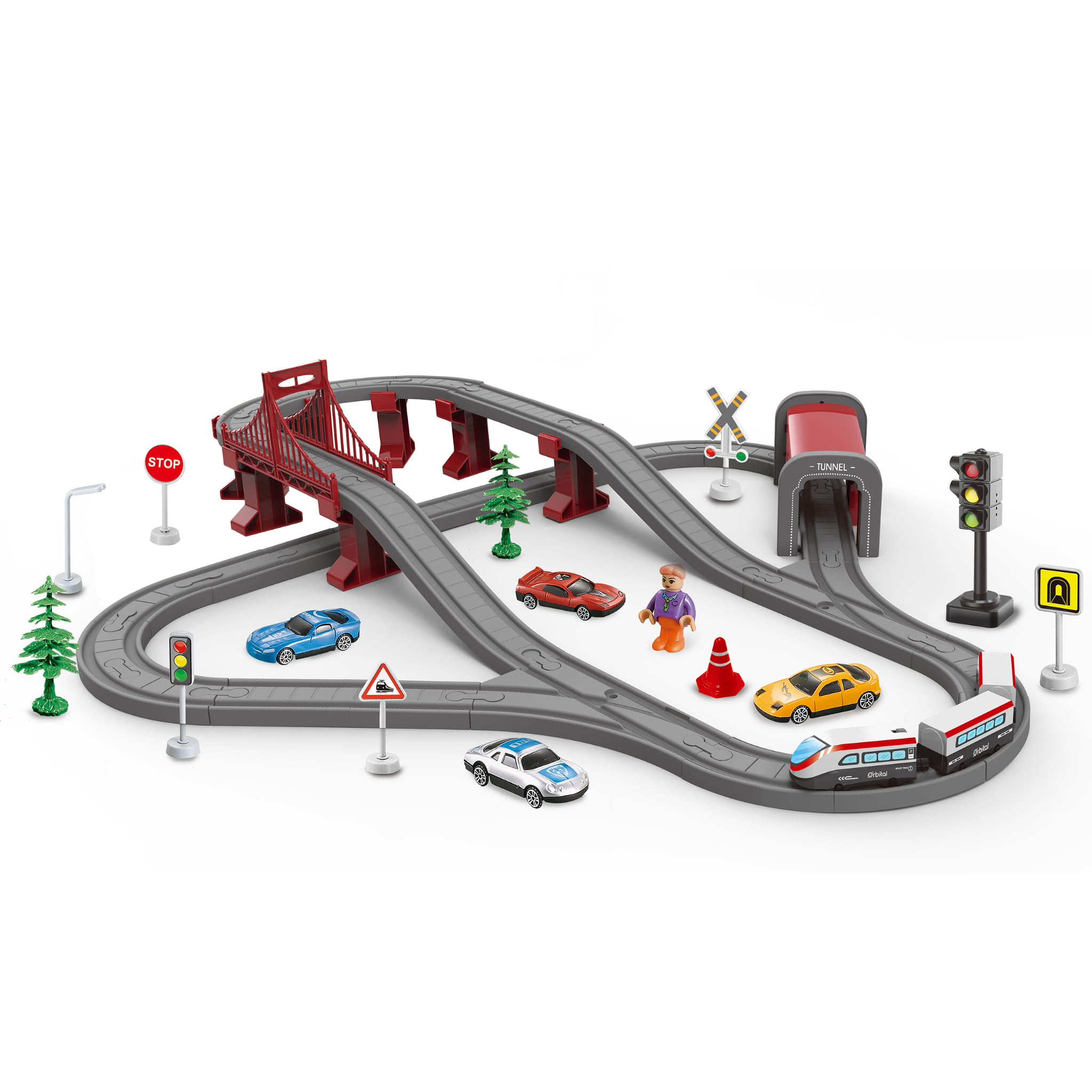 Realistyczne dodatki: most, tunel, znaki, samochodziki, drzewa, figurki