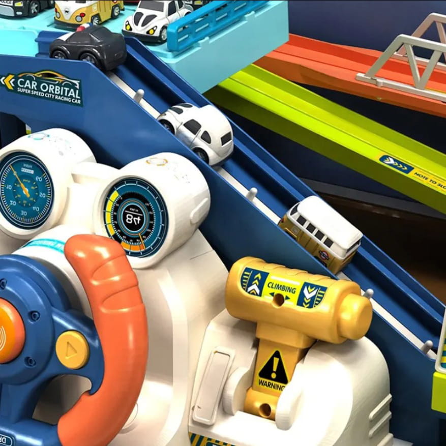 WOOPIE Parking Garaż z Interaktywną Kierownicą + 4 Auta – dynamiczny zestaw od 3 lat, który łączy garaż z torem i sterowanie interaktywną kierownicą emitującą dźwięki. W zestawie są 4 autka i mata – rozwija koordynację ruchową i kreatywną zabawę!
