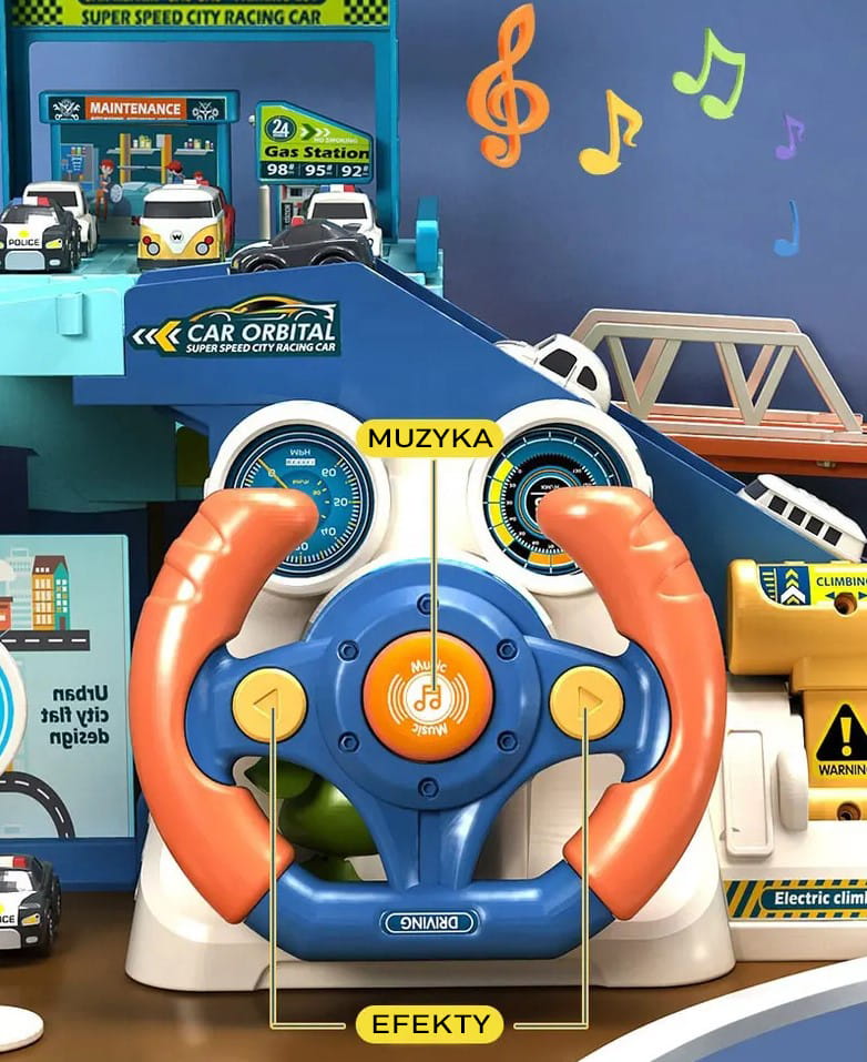 WOOPIE Parking Garaż z Interaktywną Kierownicą + 4 Auta