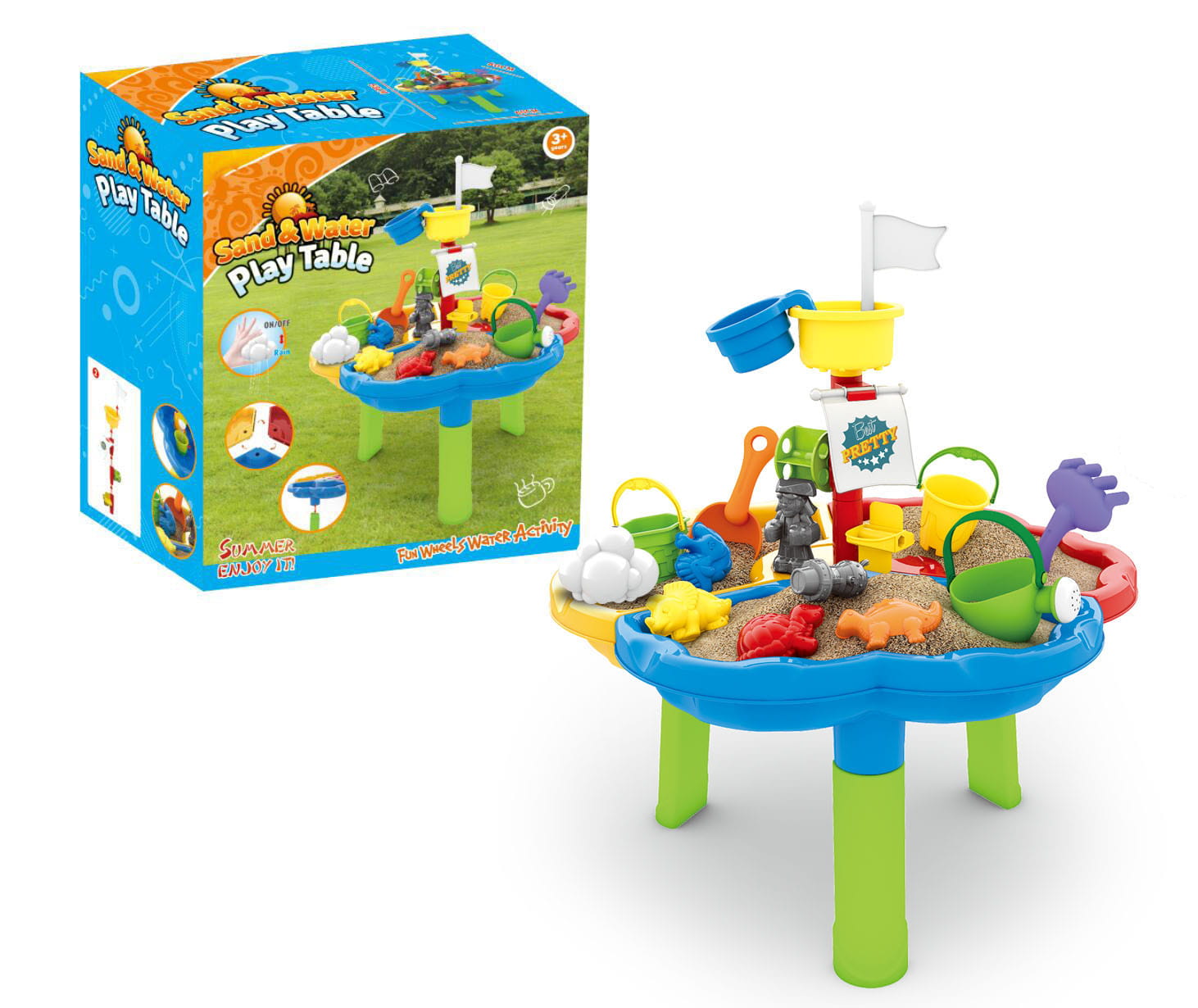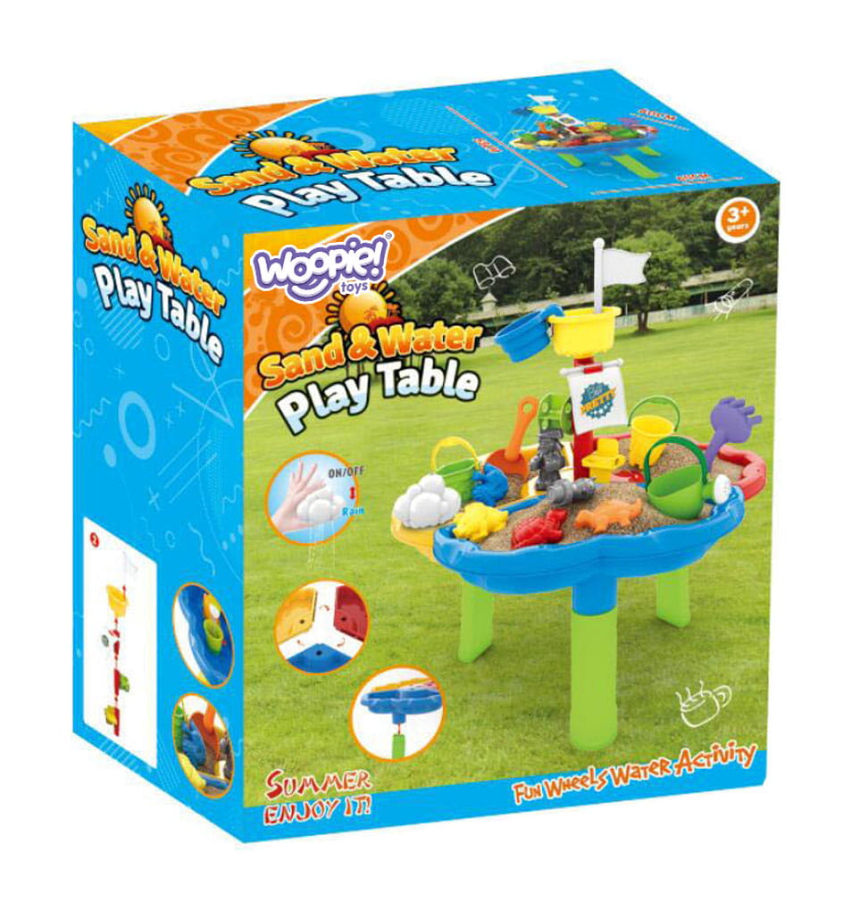 Zestaw WOOPIE Stolik Wodny 3w1 – Piaskownica Statek Piracki (13 el.) to kolorowy, wielofunkcyjny plastikowy stolik dla dzieci od 3 lat – świetna zabawa z wodą, piaskiem i budowaniem „statku pirackiego”, zawiera 13 akcesoriów jak foremki, konewka, grabki, łopatka i figurki.
