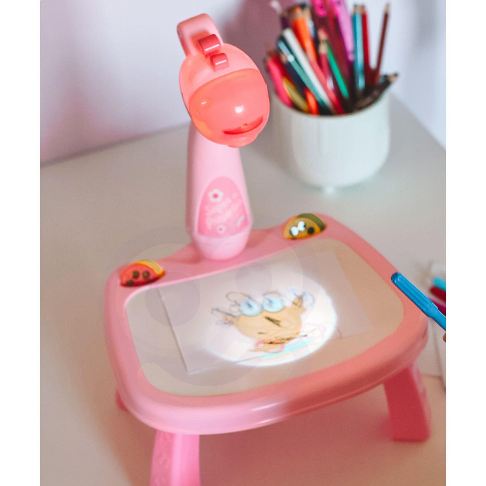 WOOPIE Tablica do Rysowania z Projektorem – Różowa Żyrafa + Flamastry