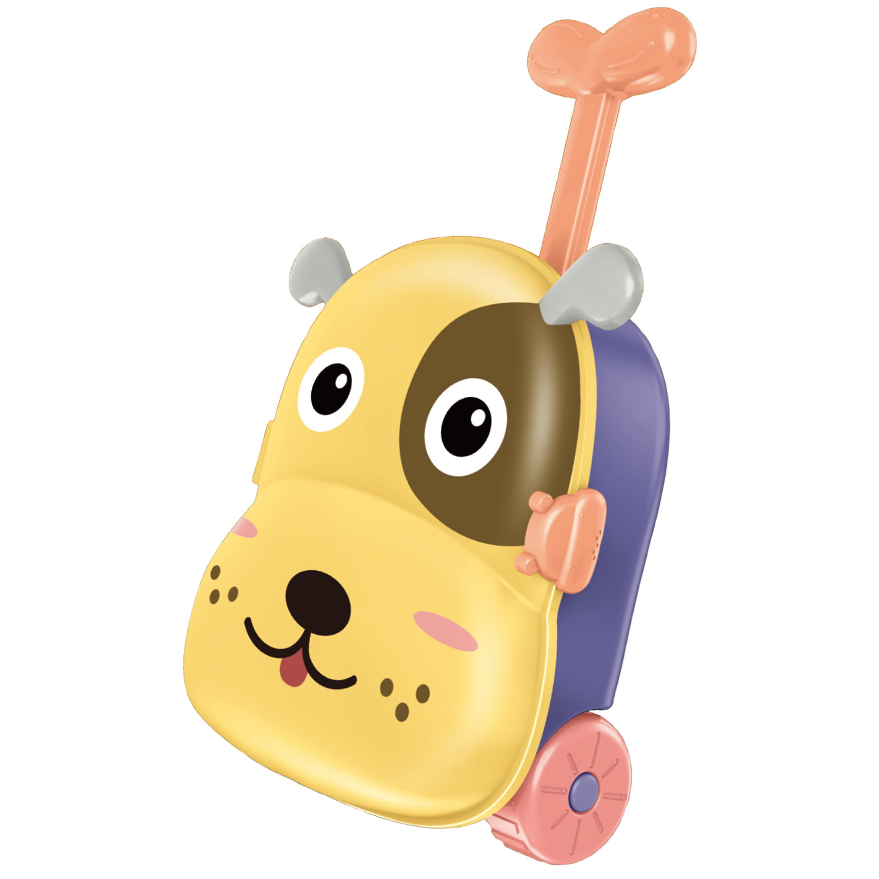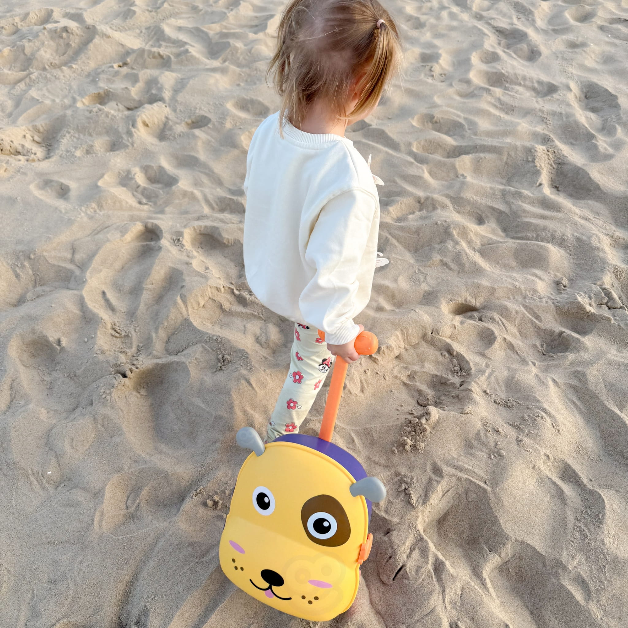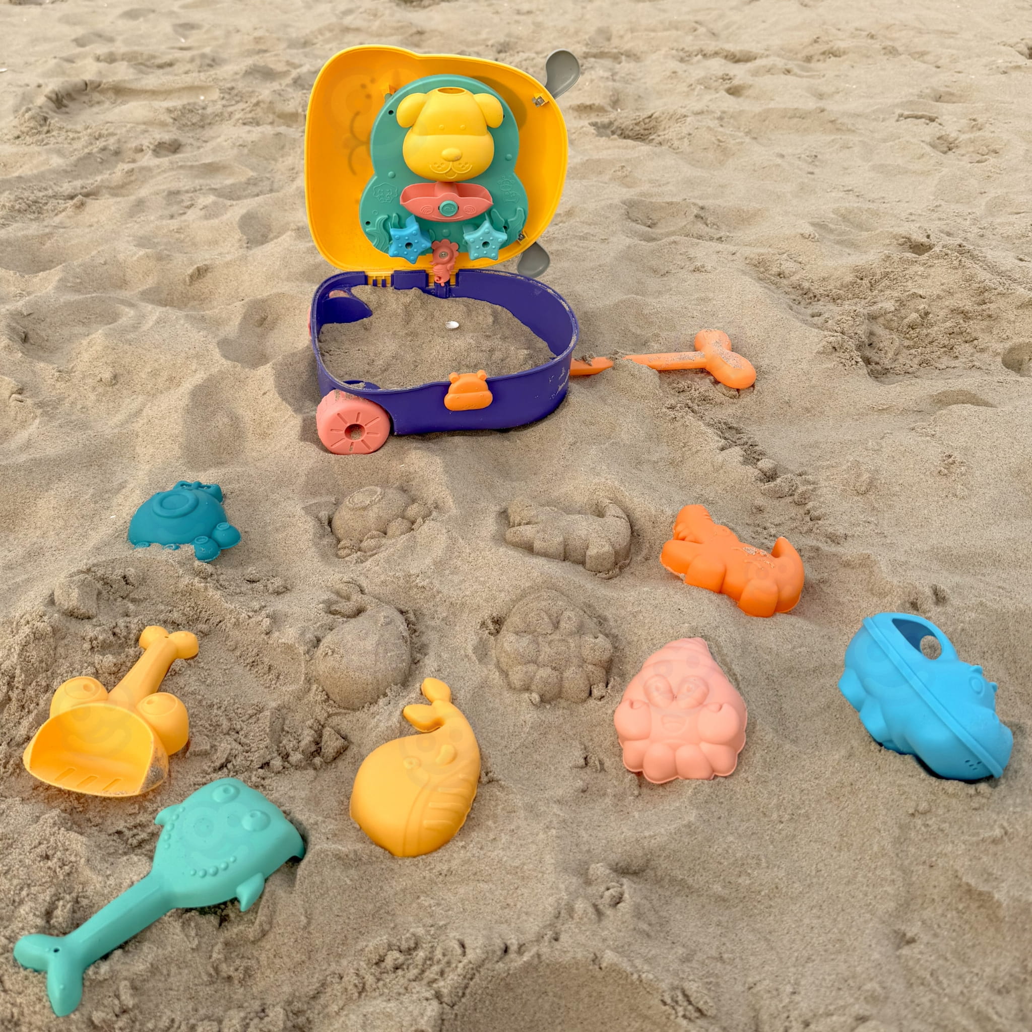 WOOPIE Zestaw do Piasku 3w1 w formie walizki z motywem pieska (lub innych zwierzaków) to wszechstronną zabawkę dla dzieci od 3 lat – wystarczy napełnić jej dno wodą, a specjalny kubeczek pozwala na polewanie "głowy" pieska, co tworzy wodną atrakcję; w środku znajduje się także komplet do zabawy w piasku: grabki, dwie łopatki, cztery foremki i kubeczek, a zamknięta walizka z rączką i cichymi kółkami z łatwością towarzyszy dzieciom w podróży, do ogrodu czy nad morze; zestaw dostarcza stymulacji sensorycznej, rozwija kreatywność i małą motorykę, a dzięki wymiarom 26 × 13 × 47 cm i wadze ok. 0,6 kg jest lekki, przenośny i gotowy do zabawy w wodzie i piasku.