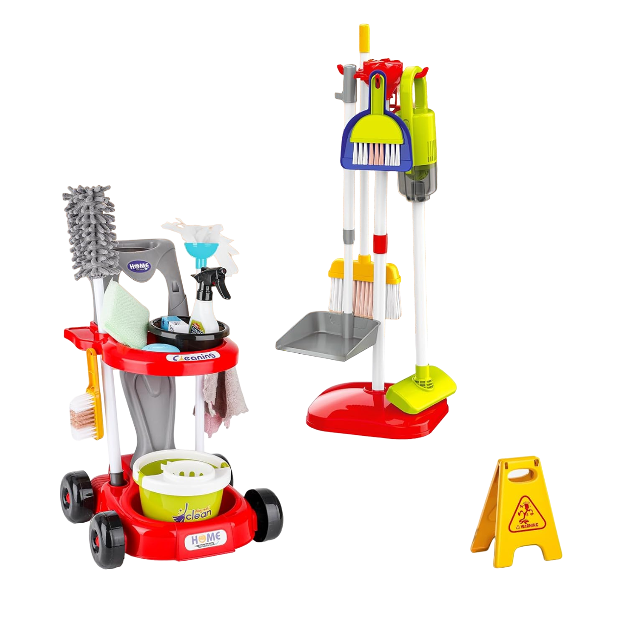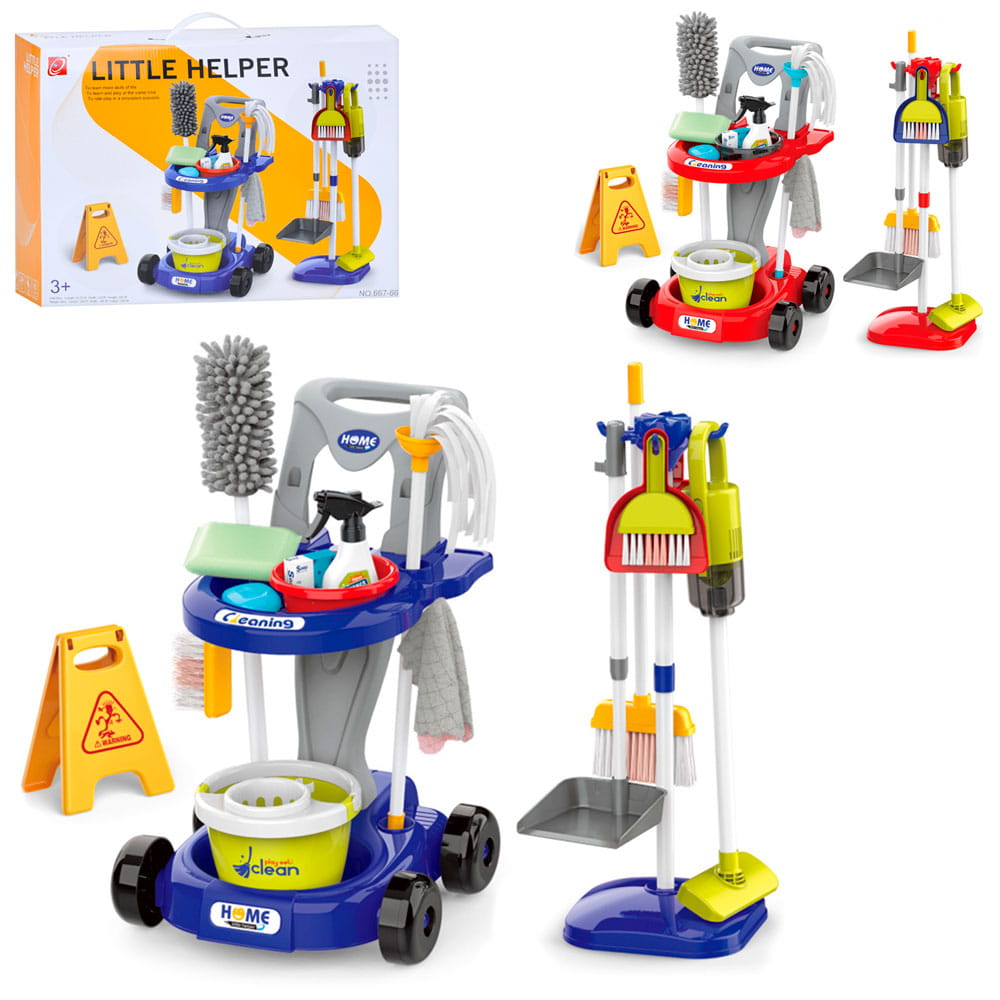 WOOPIE Zestaw do Sprzątania XXL – Wózek 3 w 1 (29 el.) w czerwieni zachęca małego pomocnika do sprzątania przez zabawę. Zestaw zawiera wózek z uchwytem, szczotki, mop, odkurzacz, wiaderko, tabliczkę “uwaga śliska podłoga” i wiele więcej — idealny dla dzieci od 3 lat, rozwijający odpowiedzialność i samodzielność!