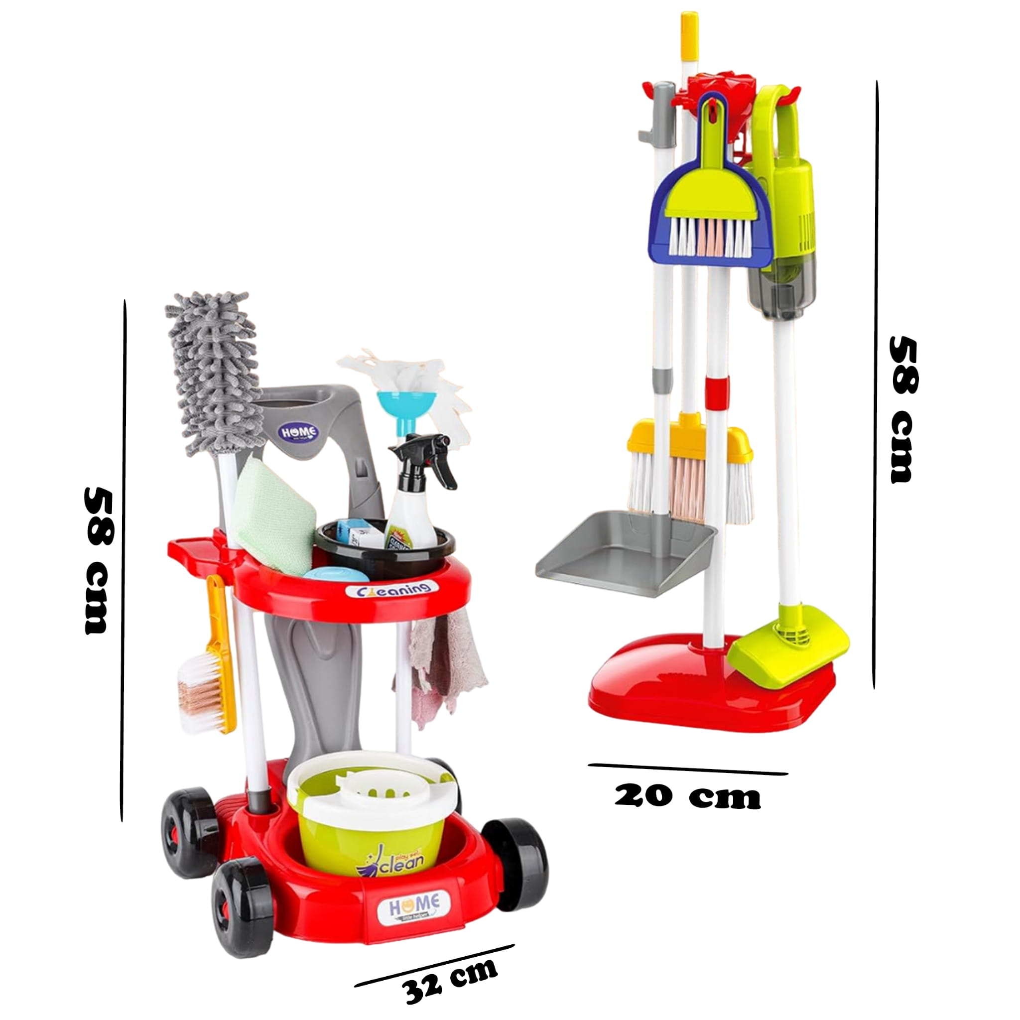 WOOPIE Zestaw do Sprzątania XXL Wózek 3 w 1 – 29 elementów (czerwony)